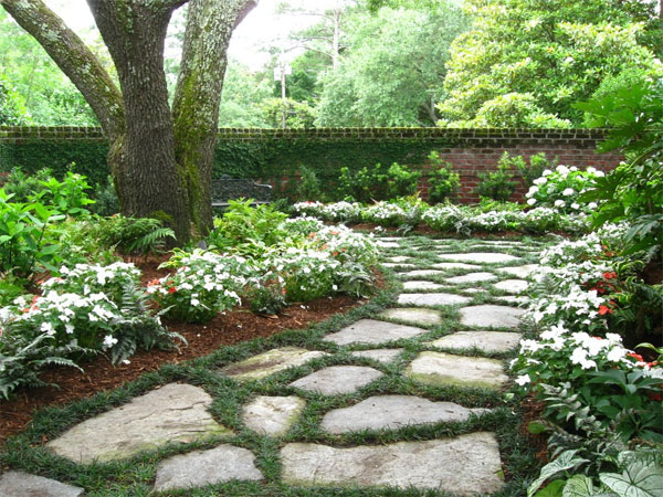 如果你家庭院面积拥有100平米以上的空间,打造野趣花园体验氛围是提升你家荒草小院子的一个好办法。你可以采用野趣自然的路径来连接花园的各个功能区域。并且在道路的两侧布满野趣花卉。它还可以为你带来一丝野趣探索体验感。道路采用装饰性的具有仿石材质感的混凝土,这样不仅美观而且还能节约造价。你还可以将混凝土的间隙空间做得较大一些,以利于种植低矮的麦冬草或播撒其它草种。开白色的多年生地被花卉,会为你的驻足停留提供一丝康雅感。但如果你比较忌讳白色花朵或者喜爱其它的颜色,你也可以采用具有暖色调的或红色花卉来替代。