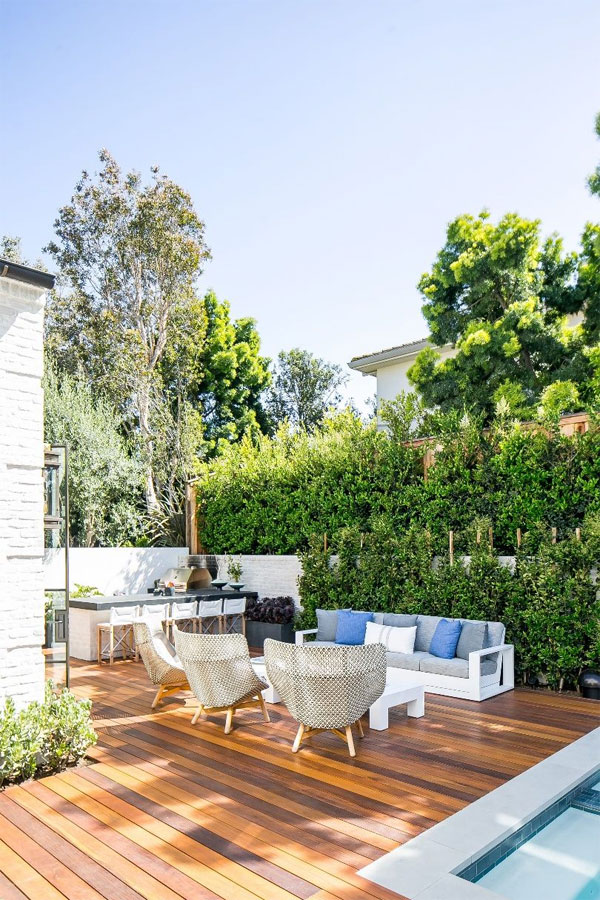 如果你家院子面积较小,你可以把小院打造成为小清新食宿花园主题来营造使用,建筑室内逍遥乐居、院内品尝美食。你可以采用灰渣砖在墙角砌筑一个小烤吧,或者作为一个简约的露天厨房。将新鲜的美食素材用来烹饪,并和家人朋友一起分享。私享一丝健康、尊享一丝团聚,让生活简单而美好。围墙可以采用北海道黄杨或者攀援植物来绿化装饰,不仅用作垂直绿化,而且让小院空间显得更加私密。