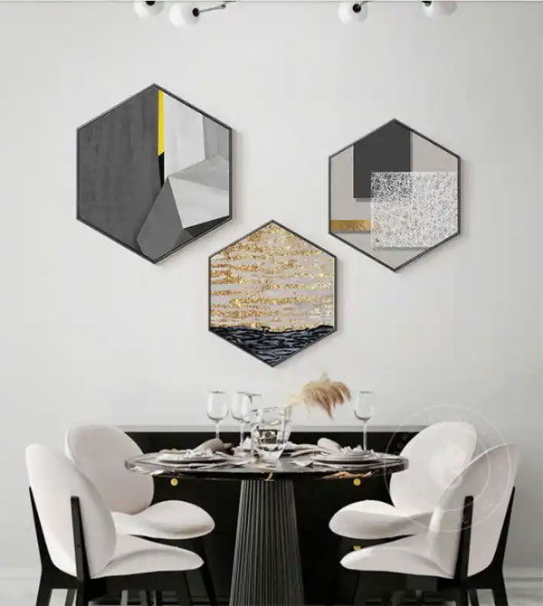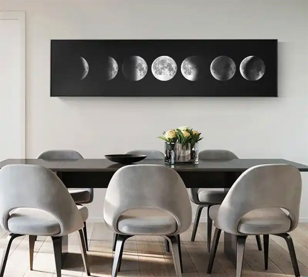黑白色调的工业风里,装饰画合适宜的带来了空间的点缀。无论月是盈还是缺,都挡不住人们渴望在餐桌前团圆的美好。激发人对食物的想象,保持对聚餐的新鲜感。